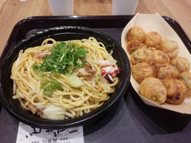 ららぽーとエキスポシティのフードコートの中のお店、会津屋の焼きそばとラヂオ焼きのセットです。ソース味の焼きそばやたこ焼きを食べたかったので会津屋さんに並んだのですが、呼び出しベルが鳴って受け取ったのがこの焼きそばとラヂオ焼きでした。食べた後、無性にソース味が食べたくなりました。