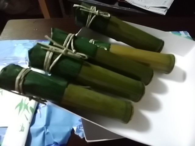 伸びてきた状態です。何度も何度も竹の尻を叩かなければようかんが出てこなかったので右手の掌が赤くなってしまいました。