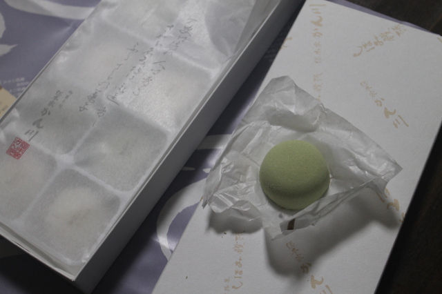 みどり色した塩味饅頭がでてきました。お盆の時にお供えする『はくせんこう」に少し似ているのですが、こちらはかなりおいしいです。
