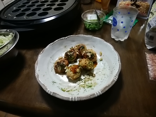 26個ずつ食べるつもりだったのですが、たこ焼きを焼く前に朝買ったリクローおじさんのパンを食べたせいか、残念ながらギブアップしてしまいました。写真は食べきれなかった6個のたこ焼きです。