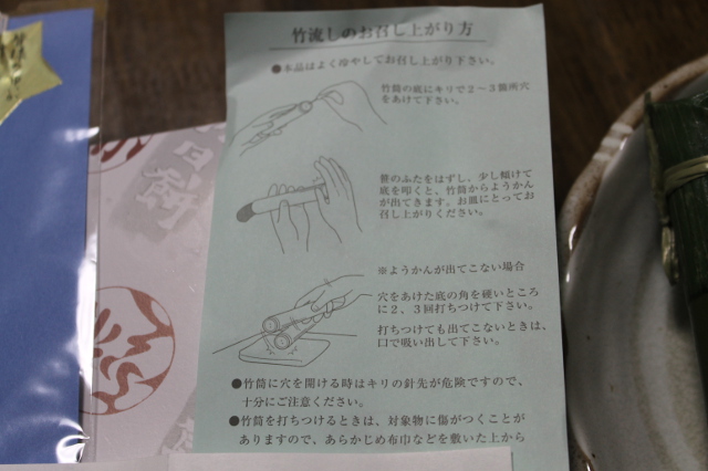 専用のキリもついていて、ようかんの出し方が説明されていました。