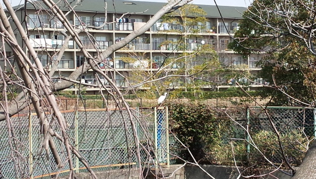 三保ケ池の横の用水池のフェンスのてっぺんにシロサギがゆっさゆっさと飛んできて留まりました。急いでスマホで撮影したのですが、遠すぎてうまく写りません。