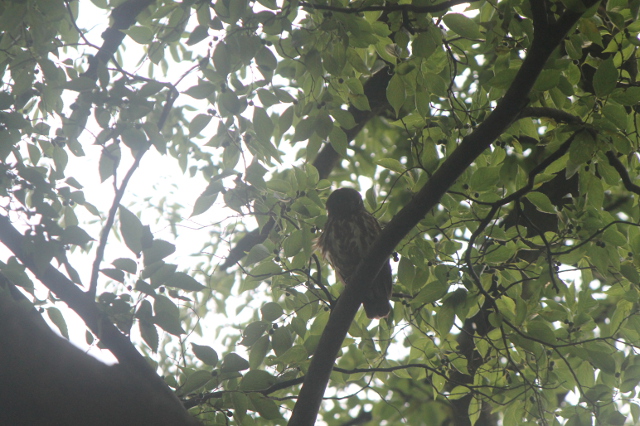 かなり撮しにくいところに二羽のアオバズクが留まっていたので、このような写真になってしまいました。