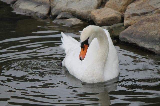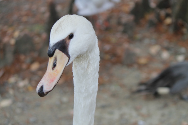 こぶ白鳥です。この公園で飼育しているそうです。くちばしの上の目と目の間に黒いこぶを見つけました。