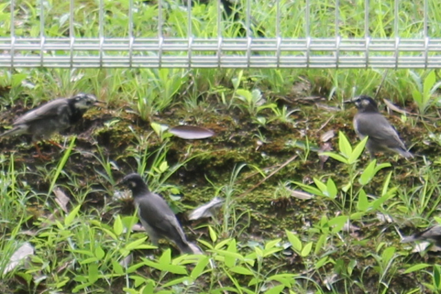 日曜の朝、異様な鳴き声がベランダのほうから聞こえてきてカーテンを軽く開けると10羽以上の鳥が裏の庭に舞い降りてきてしきりに土を啄んでいました。まだヒナのような鳥もいるようで変な鳴き声も混じっていました。ヴィーとかヴェーとか聞こえてきました。