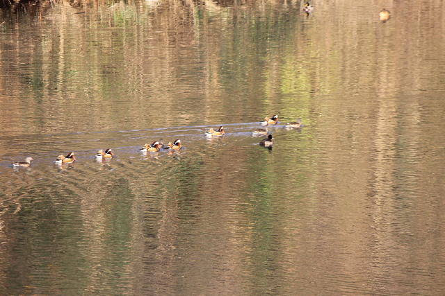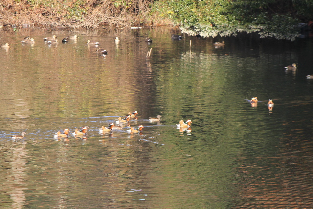 23日(にち)に撮影(さつえい)したオシドリたちです。こんなにたくさんのオシドリがいたのに驚(おどろ)きました。