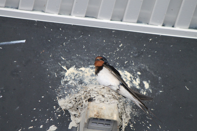 箕面の駅前で見かけた若々しいツバメです。懸命に巣を作っていました。