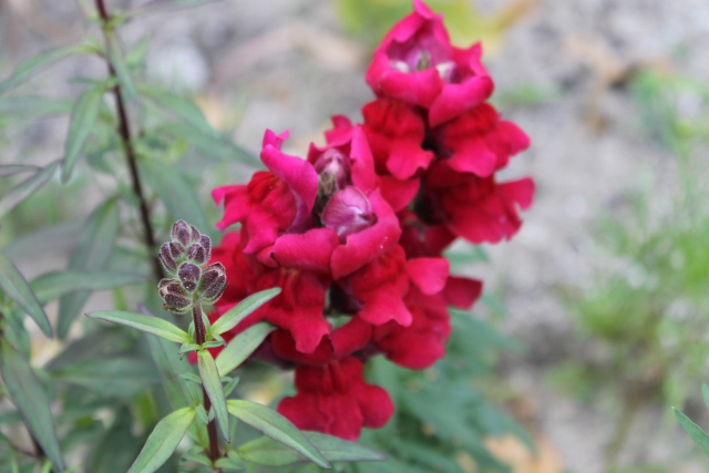 ちょっとぼやけてしまったこの赤い花を見ていて「きんぎょそう」だと思い出しました。