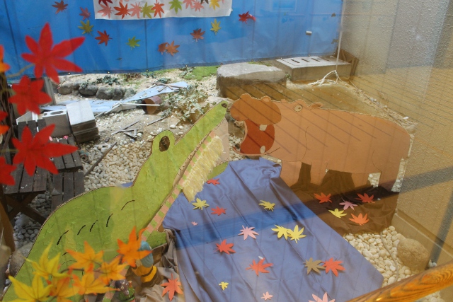 ワニさんとカバくんが立派な歯を自慢しあってます。