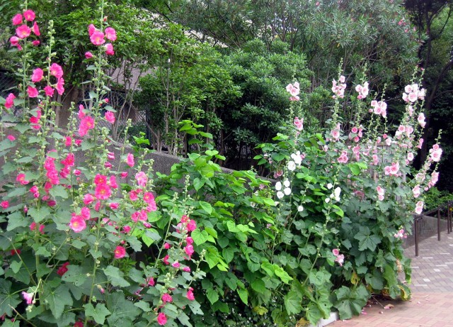 立葵並んで街のお出迎え