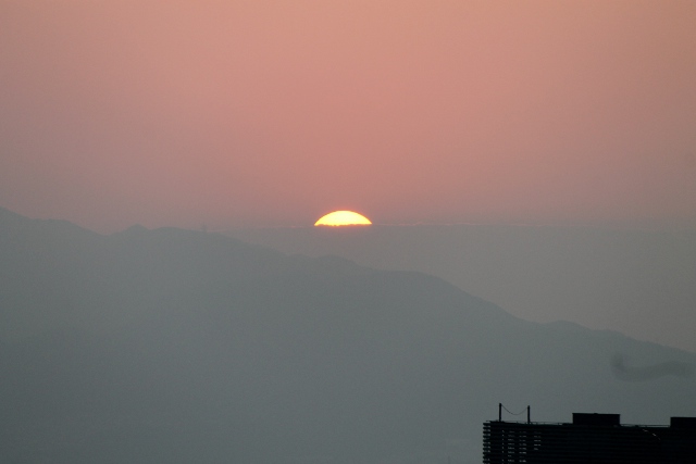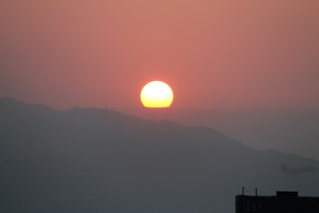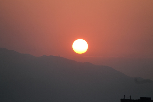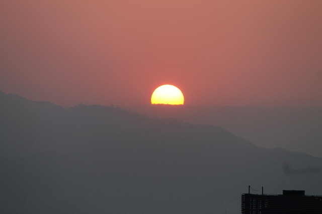 ヴィソラの屋上駐車場から真っ赤な夕陽を撮影してみました。40枚ほど撮影しました。