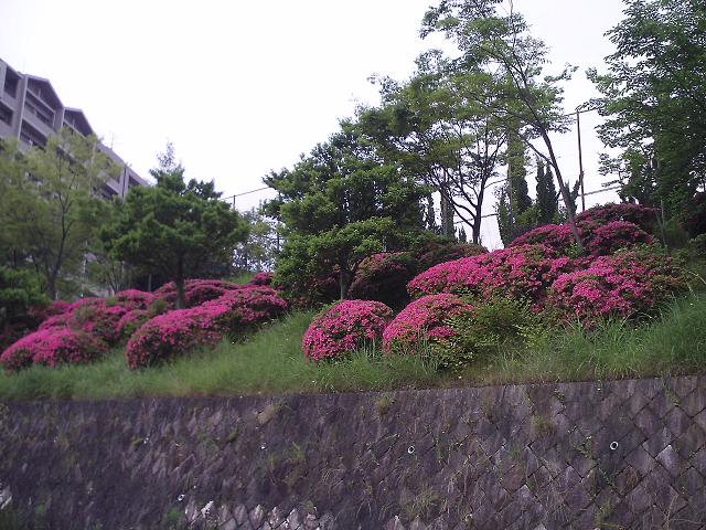 高校の外周に植えられたさつきです。日一日と赤みが増してきました。