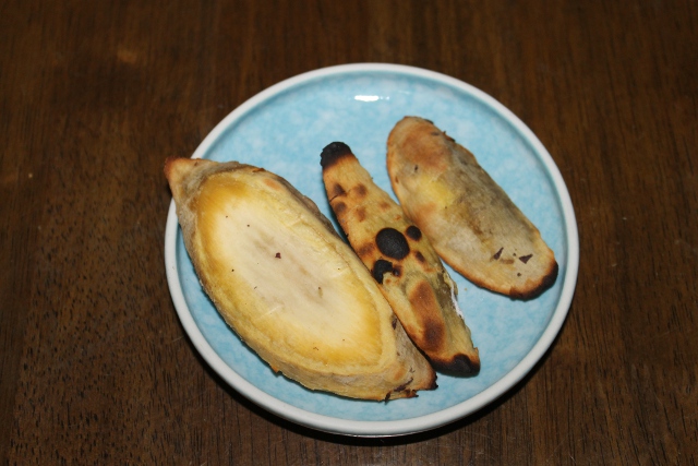焼き上がってくるとプーッと膨らんで美味しそうな焼き芋のにおいがしてきました。