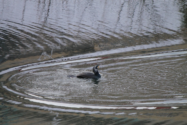この変な鳥はなんだろうと画像サイトで調べてみたらどうやら「カワウ」らしい。