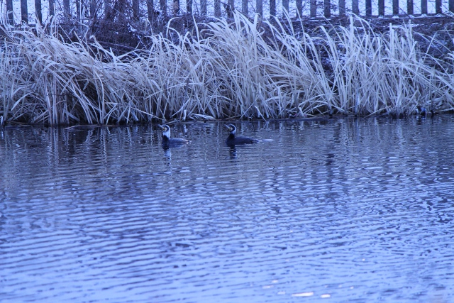 おとなりの千里川に2羽のカワウがどうやら巣を作って棲むつもりらしい。