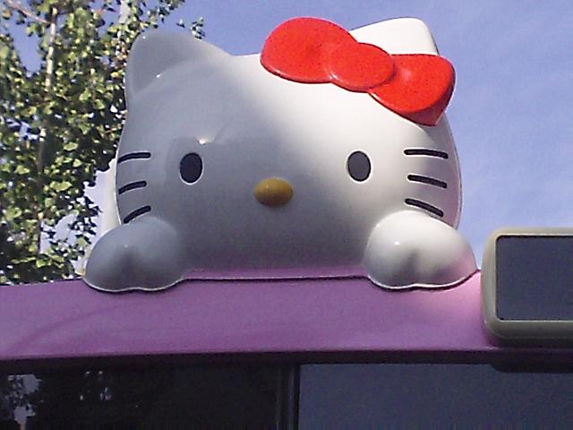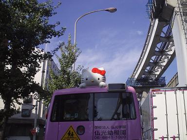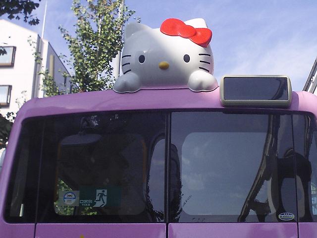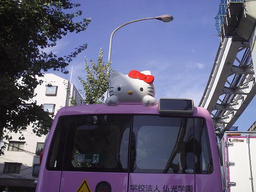 今朝もまたキティちゃんの幼稚園バスに出会いました。