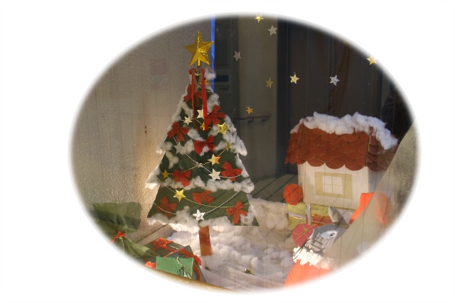 ついこの前まで綺麗な紅葉が飾ってありましたが、ふと見るとクリスマスの飾りになっていました。