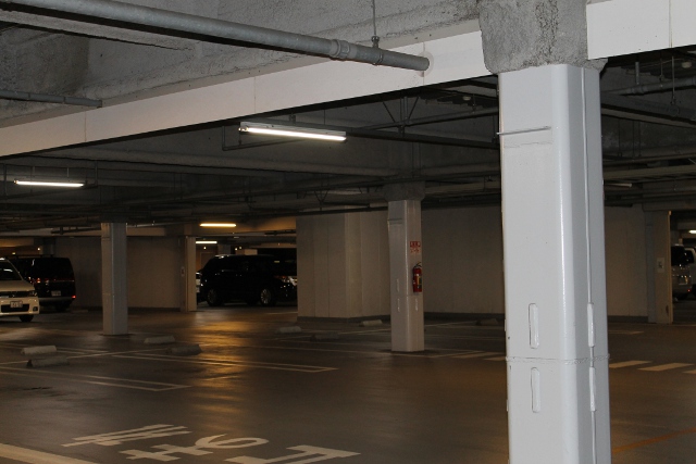 午後9時の駐車場。あんなに車で一杯駐車場が哀愁を帯びた街の空間になっています。