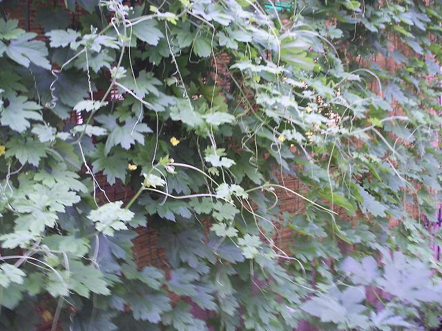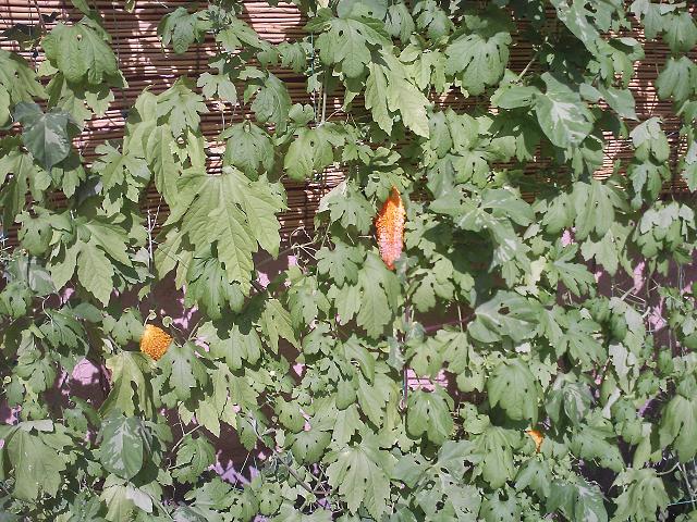 蔓がいっぱい伸びて、ジャングルのようなみどりのカーテンになってきました。