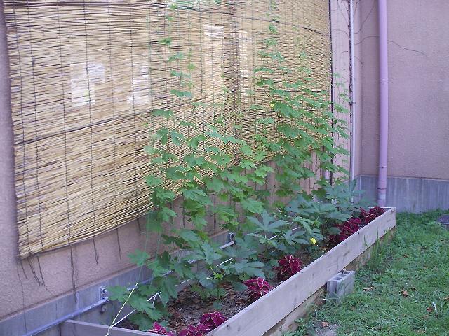 ただ真ん中のプランターのゴーヤは苗がひとつになっていました。