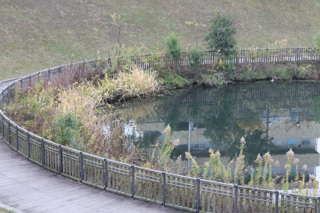 静かな朝の池です。画面の左端の方に鳥の一家が住んでいます。今朝は近づくのを控えました。