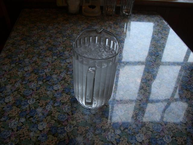 窓からの光りがガラステーブルに反射して、真ん中の水差しの存在感が浮き出されていました。