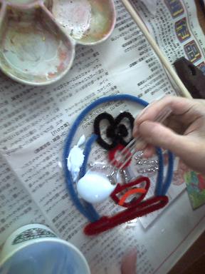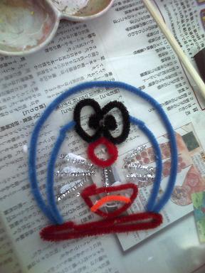 ほとんどの子がクリスマス関係のステンドグラスに取り組みましたが、この人はドラえもんの顔を作成しました。