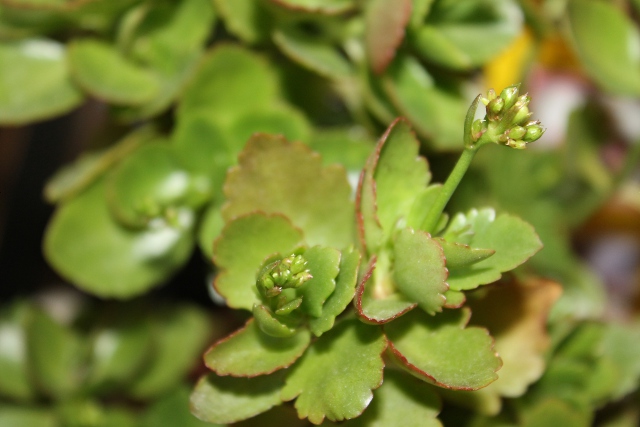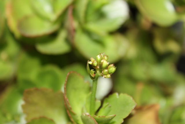 カランコエの花芽(はなめ)です。毎日(まいにち)見(み)ているので変化(へんか)に気(き)づきにくいのですが、着実(ちゃくじつ)に伸(の)びてきているように思(おも)います。