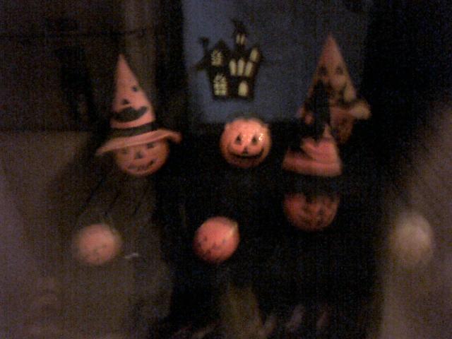 いつも行っている病院の窓飾りがハロウィーンの飾りになっていました。いつもは明るいウインドウがくらーくデザインされていて、ちょっと不気味な感じでした。この飾り、夜中に見るとちょっと怖いかもと思いながら病院をあとにしました。暗いので携帯のカメラではきれいに写りません。お許しください。