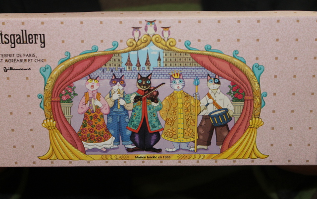 四日遅れ(よっかおくれ)のチョコレートをいただきました。箱(はこ)のデザインが面白(おもしろ)かったのでアップしてみました。