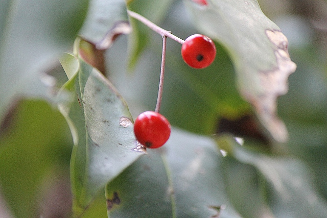 きれいな赤い実をつけた木がたくさんありました。鳥たちはこんな実を食べにくるのでしょうね。足元には柿の実がつぶれていて柿の種があちこちにありました。これも鳥たちの仕業でしょうか?