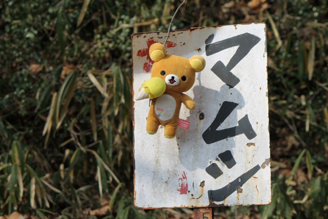 その横には『パンク魔』が出没して車のタイヤを針で刺してパンクをさせるので注意してくださいというビラがありました。『パンクマ?』・・『リラックマ』