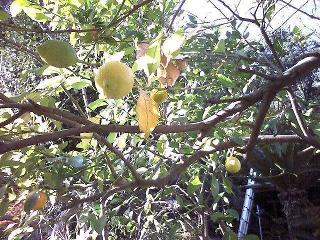昼過ぎの太陽の光りを浴びてレモンの木が輝いていました。まーるいレモンの実にも光が当たり、美しいレモン色が目にまぶしかったです。レモンを眺めるとはるか向こうに関西大学ミューズキャンパスなど新しい建物が見え、JRの跡地が大きく発展してきているのがわかります。