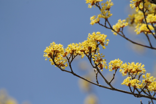 「サンシュユ」とは中国名「山茱萸」の音読み。茱萸はグミのことで、秋にはグミのような実がなる。赤く熟し食べられる。梅の香りに誘われる時期に、葉の出る前に黄色の小さな花をたくさんつける。早春を代表する花木のひとつ。・・とのことで一つ新しい知識が増えました。ありがとうございます。