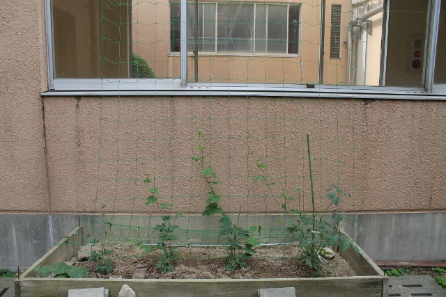 ゴーヤも少しは伸びました。緑のカーテンになる頃にはもっともっと暑くなるのでしょうね。