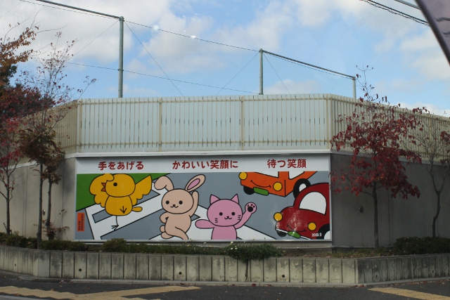 京都の堀川通りを北上した時にちょっと可愛い啓発壁画です。