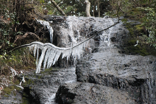 水しぶきも枝について凍っています。のれんのようになっていました。