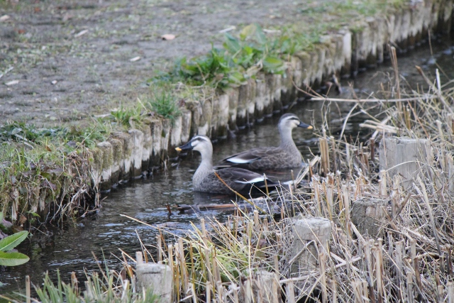 ビックリしたのは川の真ん中に大きな鴨が二羽仲良く泳いでいました。