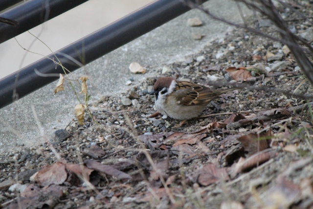 川から上の道に上がると雀たちが騒いでいました。