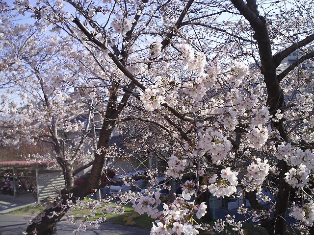 のびのびと両手を広げるように枝を伸ばして見上げると道の上にまで花を咲かせていました。