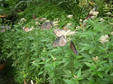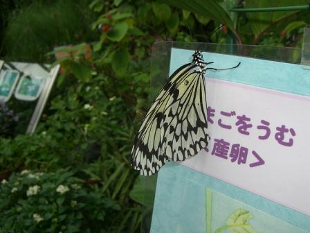 昆虫館前のゲートに着き、最初に出会ったのは幼稚園の団体さんでした。二人ずつ手をつないだ幼児さんたちが横断歩道を渡るために信号のところで列を作っていました。公園の方へ行ったのか昆虫館の前では今度は小学生の団体さんでした。団体が来る前に蝶の温室に入りたくて、彼らを追い抜いて温室へ入りました。