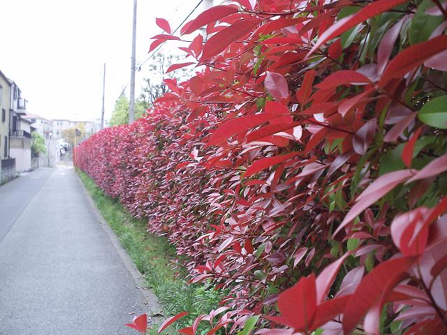 あかめがしわの街路樹が日増しに赤くなりまるで真っ赤な壁のようです。