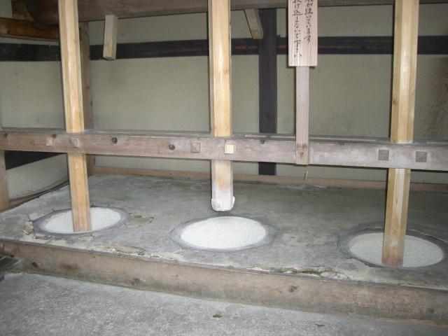 上の写真、何かわかりましたか?私も今まであまり見たことがありませんでした。三つ並んでいるのは臼でコメを付いているのです。その動力が下の水車です。このリニューアルしたブログのタイトルの背景がその水車の写真です。そしてこの水車は未だ現役なのです。この水車が付いたコメの粉でおせんべいを作っています。