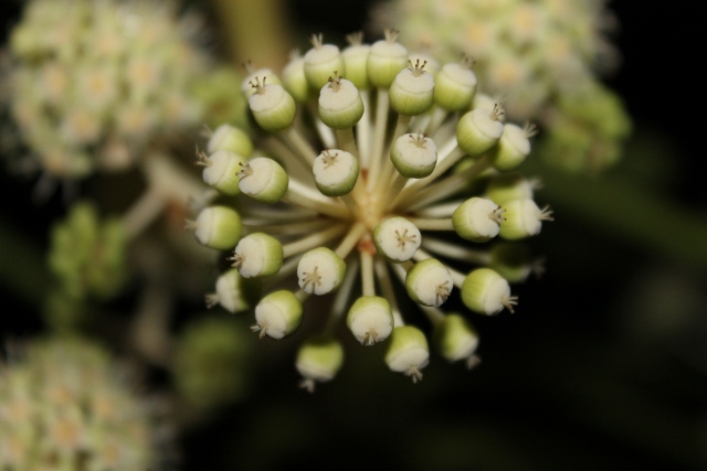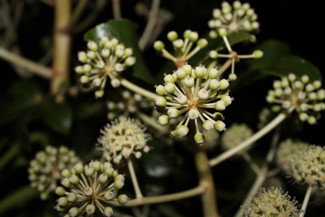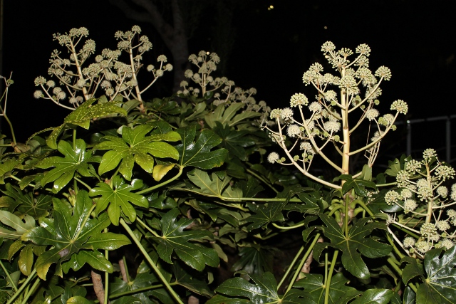 夜の闇の中に八つ手の白い花が浮かび上がっていました。