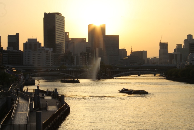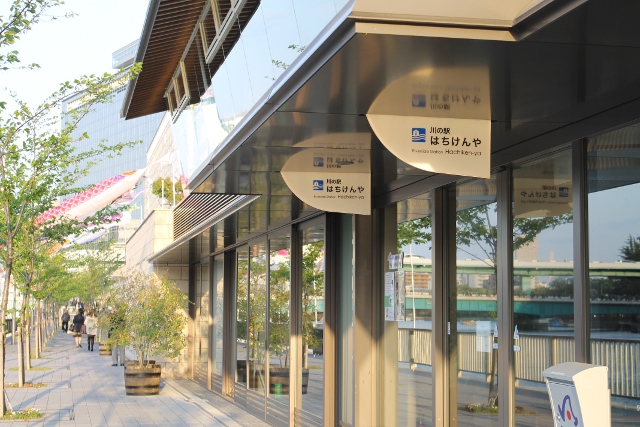 京阪電車の天満橋駅に下りると、「造幣局通り抜け」→の看板が至るところにあり、「通り抜け」→の案内の通りに歩きました。この八軒や浜の船着き場が通り道になったり、待ち合わせ場所になったりして賑わっていました。