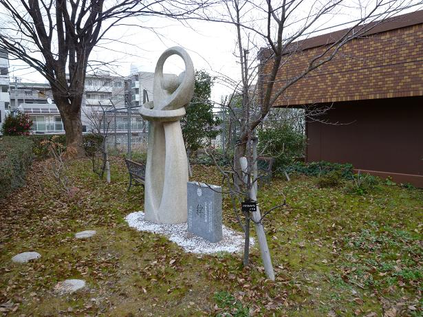 あたたかい仕事場から一歩外へ足を踏み出すとそこは寒い寒い冬真っ盛りでした。細くなったススキが風に揺れ、記念の像の横でハナカイドウの木が細く細くふるえていました。