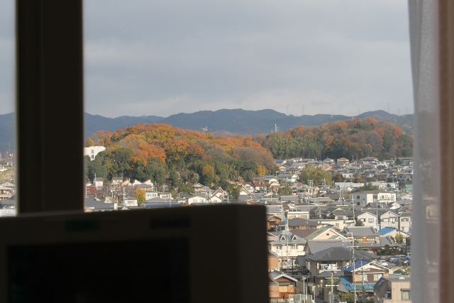 赤や黄色や茶色の色で山がこんもりと膨らんだようです。春先の若葉での膨らみとまた趣がちがいますね。