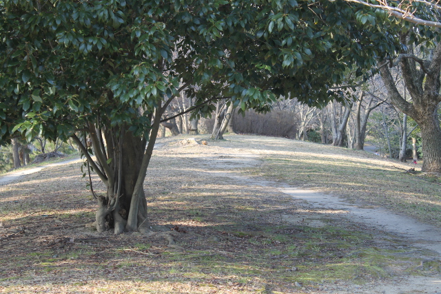 千里中央公園(せんりちゅうおうこうえん)で見(み)た緑(みどり)の木(き)です。緑(みどり)の木(き)に朝(あさ)の光(ひかり)が当(あ)たって暖(あたた)かな空間(くうかん)を作(つく)っていました。