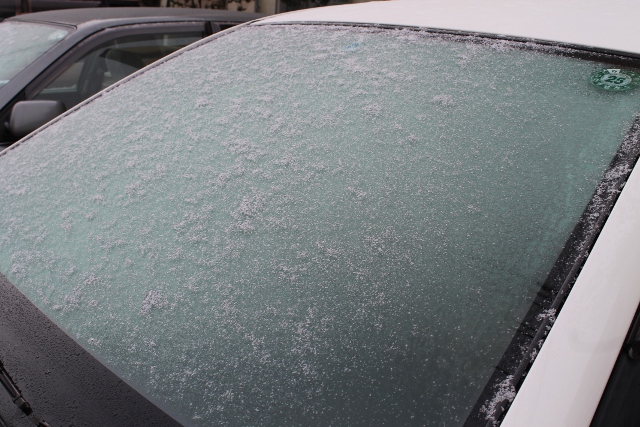 2月17日、寒い朝です。車を出そうとしたのですが、雪が積もって凍っていました。