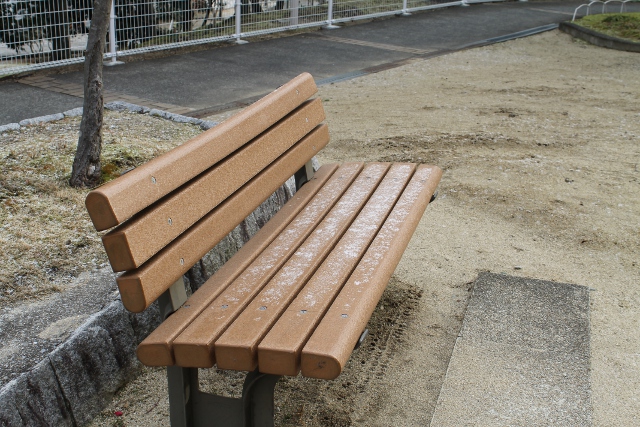 児童公園のベンチにも雪がうっすらと積もっていました。
